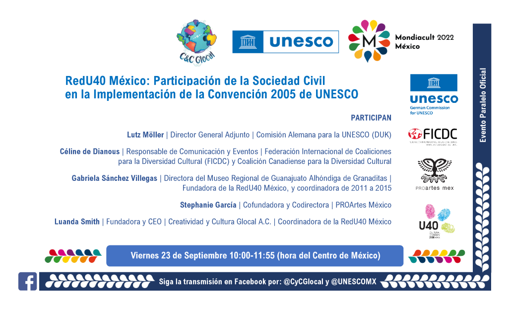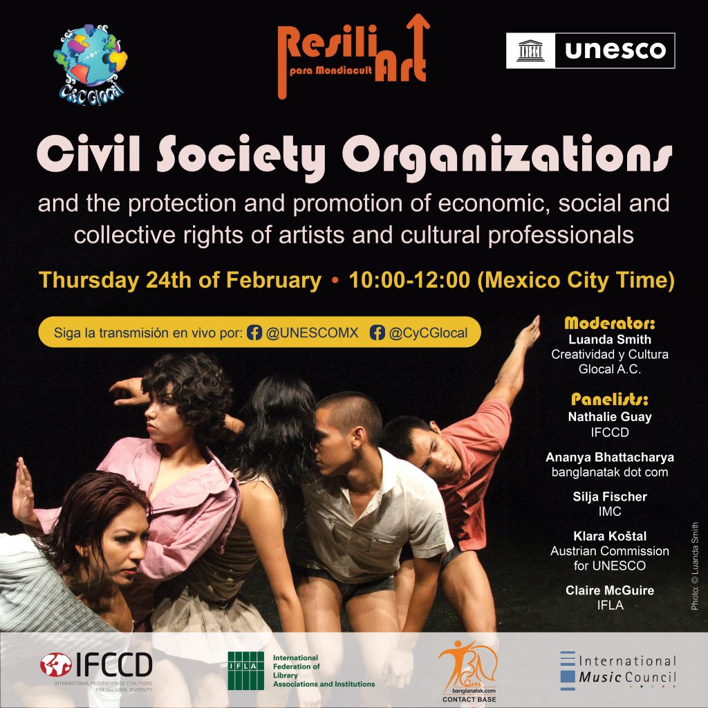 Creatividad y Cultura Glocal formó parte del grupo de 16 OSC que se coordinaron voluntariamente para desarrollar el concepto, actividades y procesos del 3er Foro de Sociedad Civil en el año 2021. Las organizaciones participantes incluimos: AC Eurovisioni, Arterial Network, Coalición Chilena para la Diversidad Cultural, Coalition Française pour la Diversité Culturelle, Coalition Malienne pour la Diversité Culturelle, Coligação Portuguesa para la Diversidade Cultural, Contact Base, , Cultural Contra Conflict, Culture et Développement, Culture Funding Watch, FICDC, Consejo Internacional de Cine/Televisión/Comunicación Audiovisual (ICFT), Federación Internacional de Asociaciones de Bibliotecarios (IFLA), Consejo Internacional de la Música (IMC), e Instituto Internacional del Teatro (ITI).
